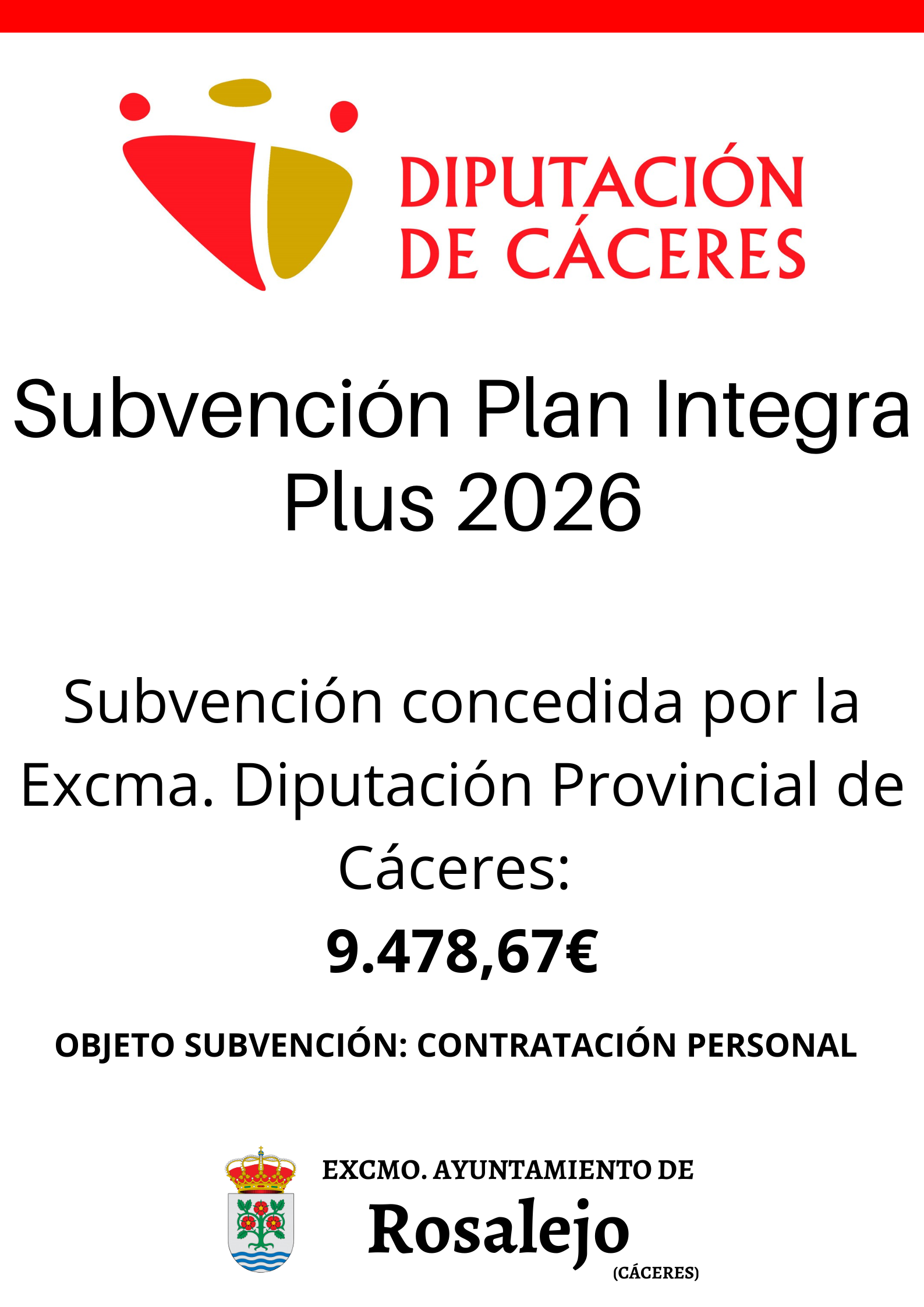 SUBVENCIÓN INTEGRA PLUS 2026. DIPUTACIÓN DE CÁCERES